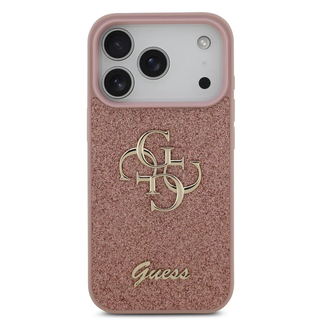 iPhone 17 Pro tok, Guess PU Fixed Glitter 4G Metal Logo - rózsaszín