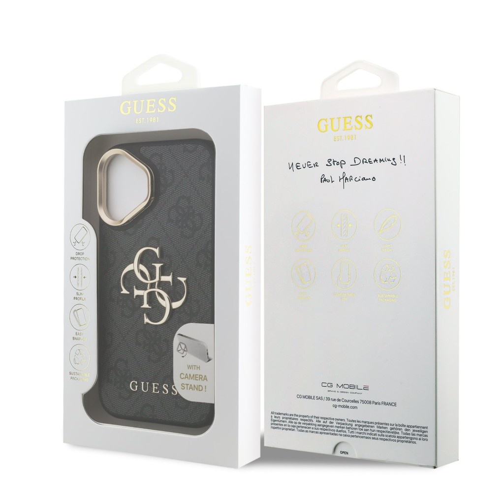 Guess PU 4G Metal Logo Stand Camera Frame tok, iPhone 16 - fekete