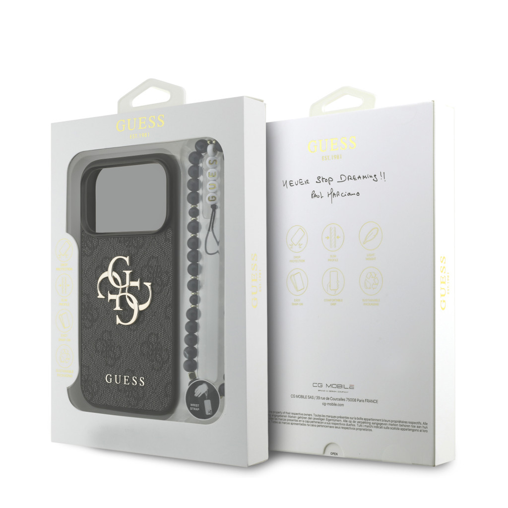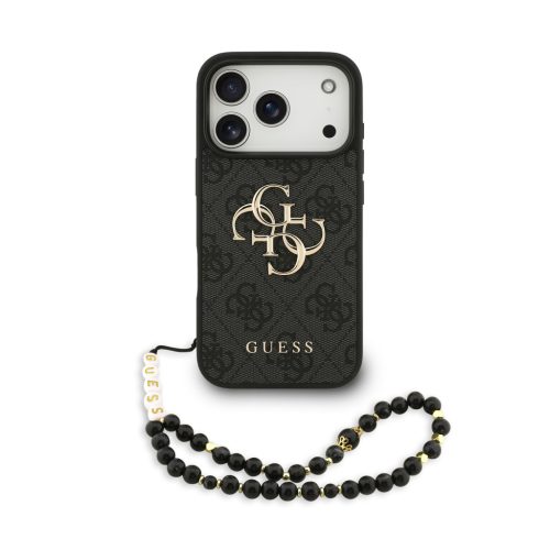Guess PU 4G Metal Logo Strap tok, iPhone 17 Pro - fekete