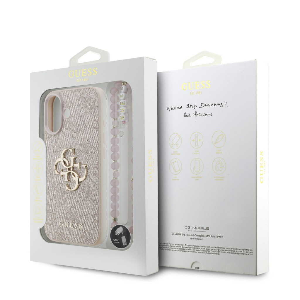 Guess PU 4G Metal Logo Strap tok, iPhone 17 - rózsaszín