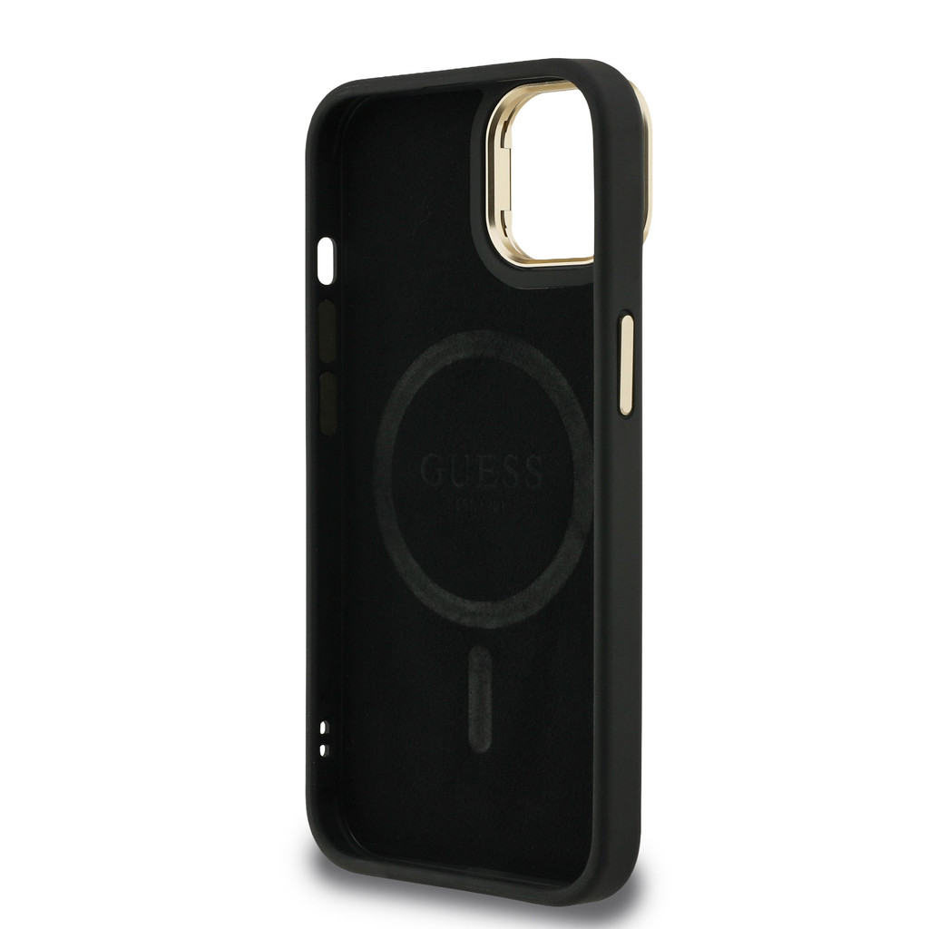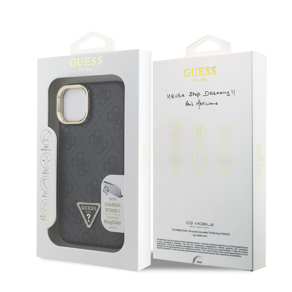 Guess PU 4G Strass Triangle Logo Stand Camera Frame MagSafe hátlap – Prémium védelem beépített állvánnyal