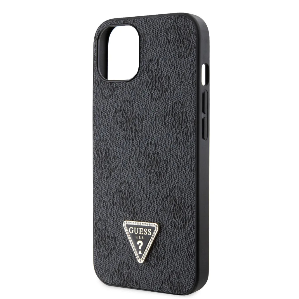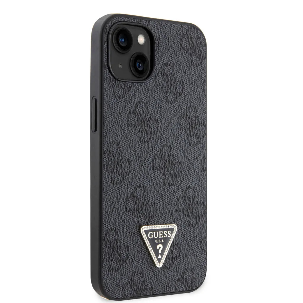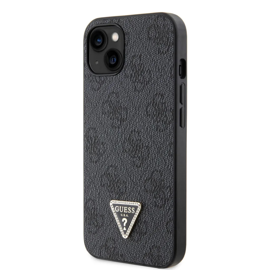 Guess PU 4G Strass Triangle Metal Logo tok, iPhone 16 Pro - fekete