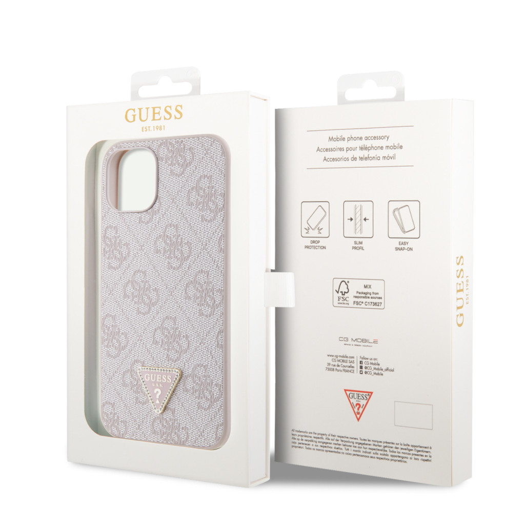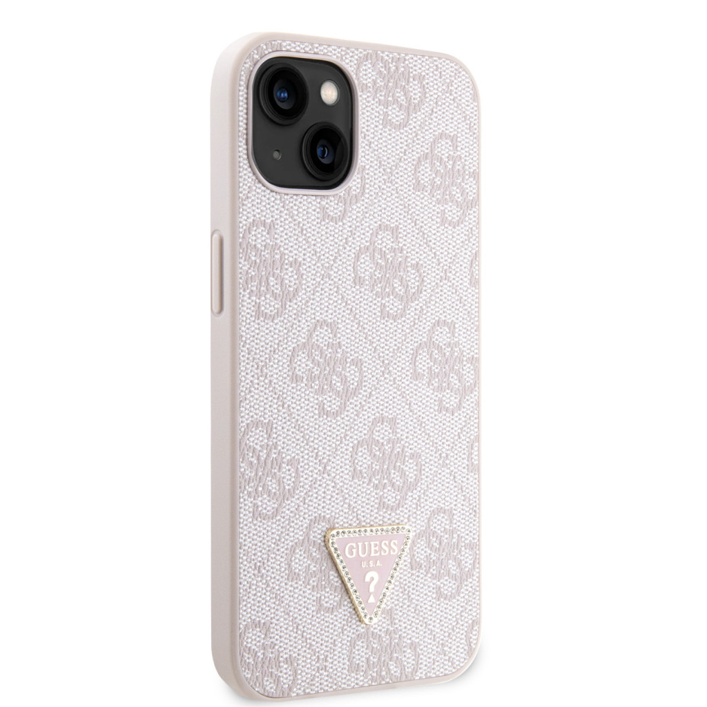 Guess PU 4G Strass Triangle Metal Logo tok, iPhone 16 Pro - rózsaszín