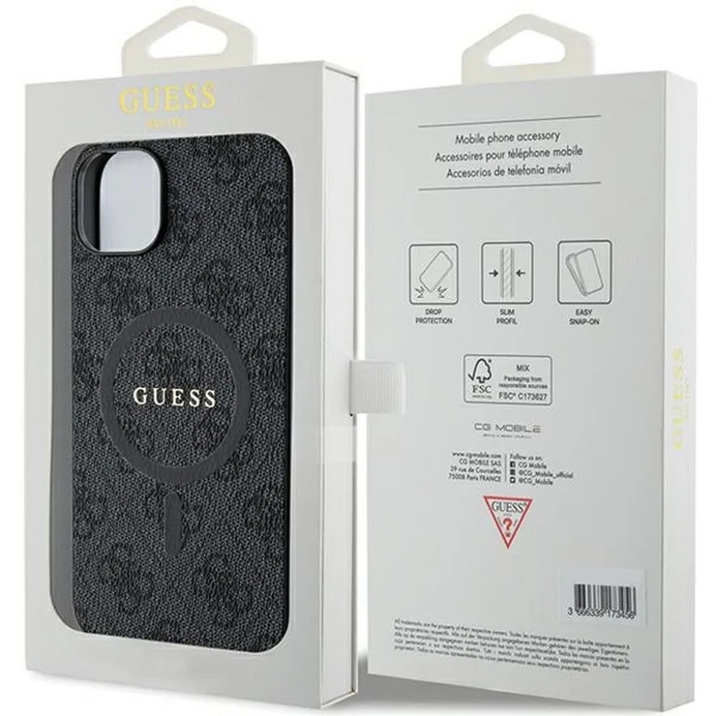 Guess PU Leather 4G Colored Ring MagSafe tok, iPhone 16 Pro - fekete