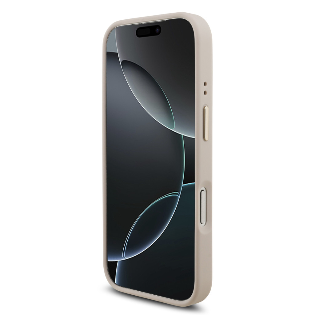 Guess PU Leather 4G Metal Logo arany Frame tok, iPhone 17 Pro - rózsaszín