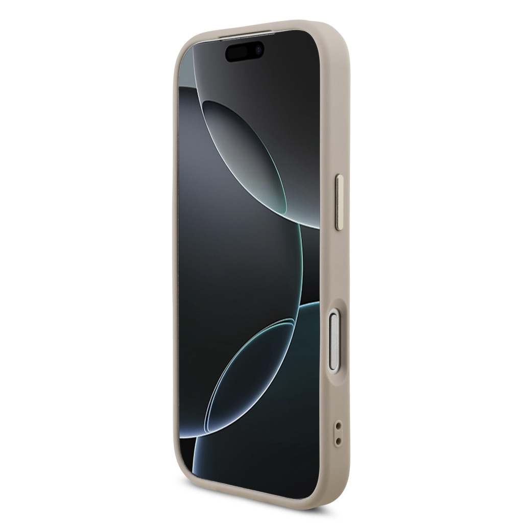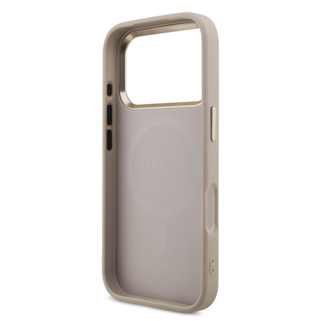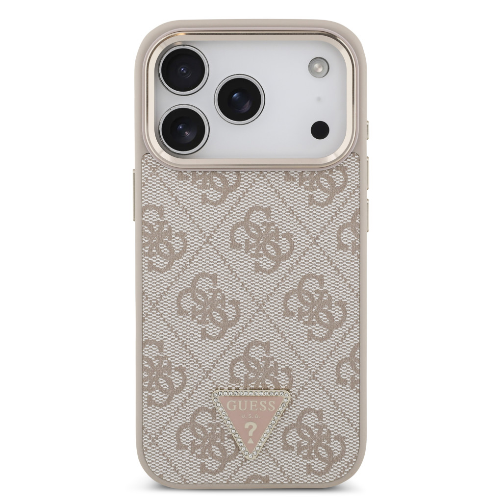 Guess PU Leather 4G Strass Triangle Logo arany Frame MagSafe tok, iPhone 17 Pro - rózsaszín