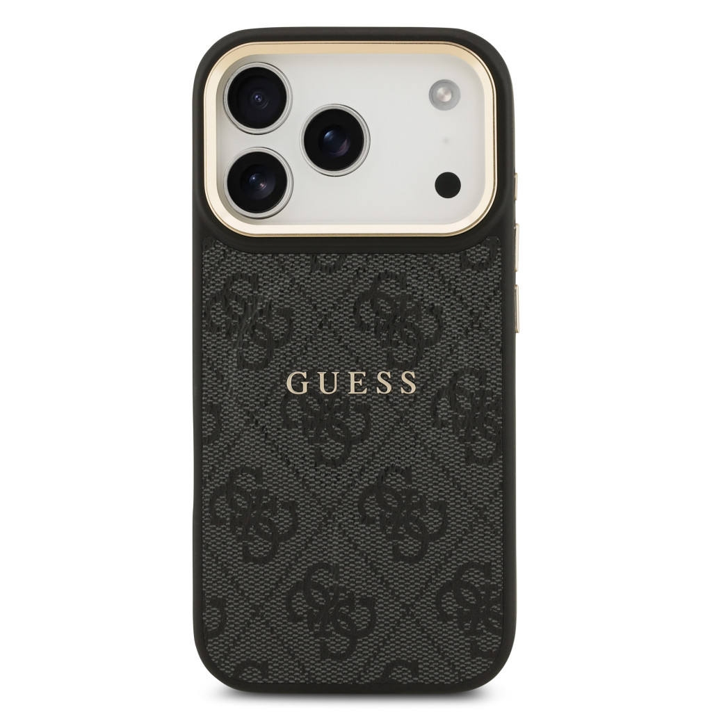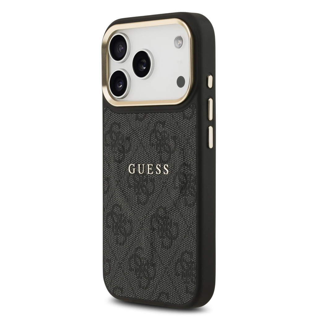 Guess PU Leather 4G arany Frame MagSafe tok, iPhone 17 Pro - fekete