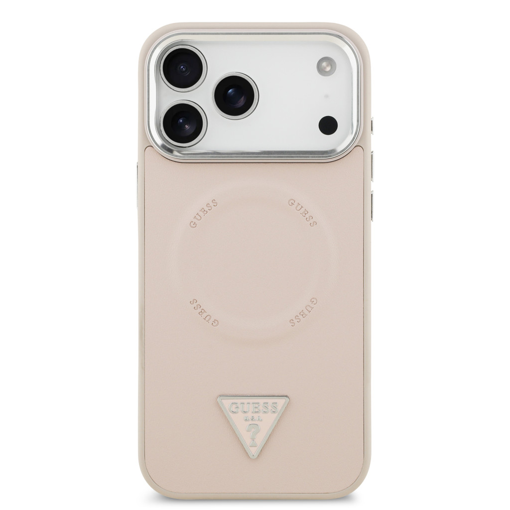 Guess PU Leather Triangle Logo MagSafe tok, iPhone 17 Pro - rózsaszín