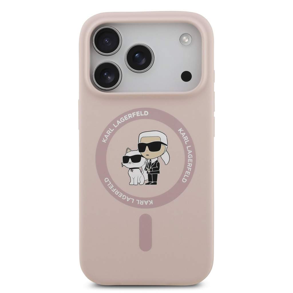 Karl Lagerfeld Liquid Silicone Karl and Choupette MagSafe tok, iPhone 17 Pro - rózsaszín