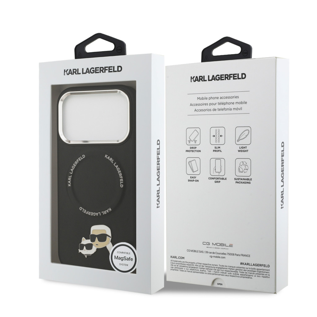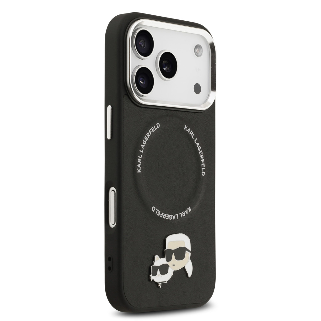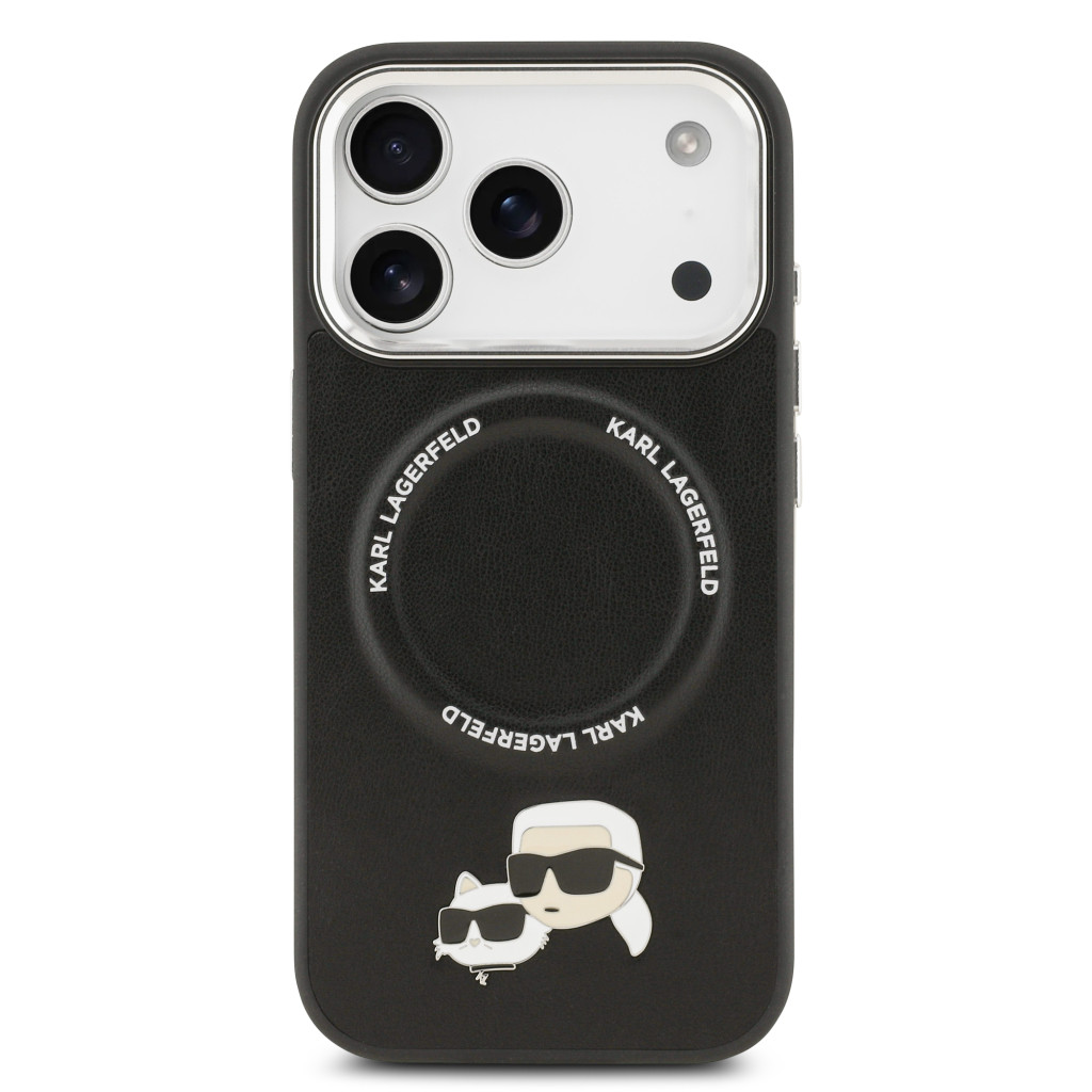 Karl Lagerfeld PU Karl and Choupette Heads Pins MagSafe tok, iPhone 17 Pro - fekete