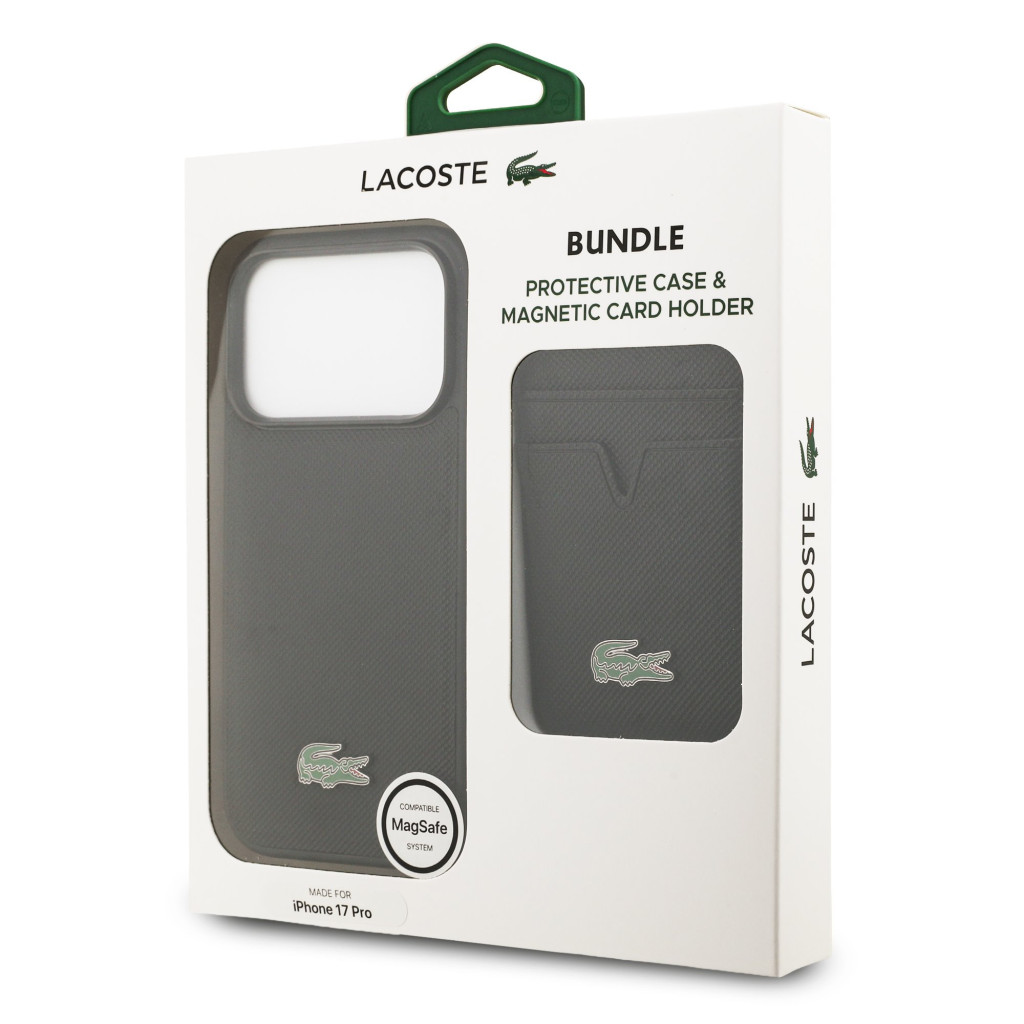 Lacoste Iconic Petit Pique MagSafe tok + kártyatartó pénztárca, Apple iPhone 17 Pro - fekete