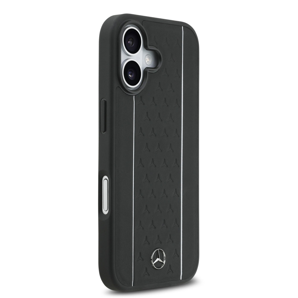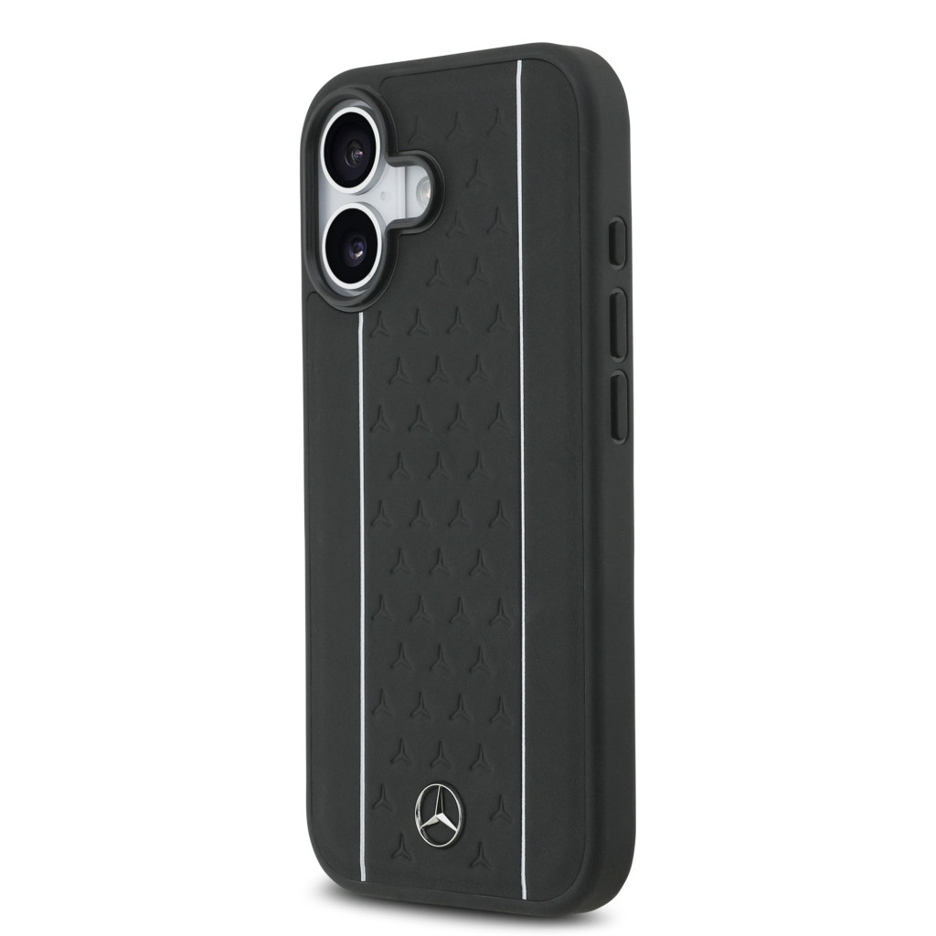 Mercedes Leather Star Pattern and Stripes MagSafe iPhone 17 tok – Fekete/Fehér – Prémium autóipari stílus