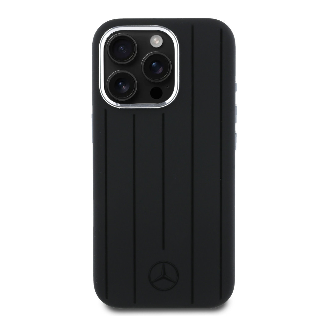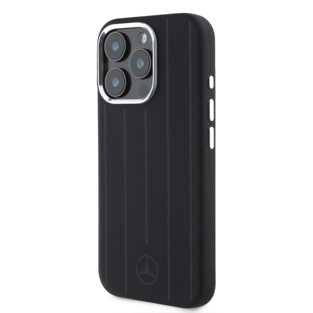 Mercedes Liquid Silicone Stripes Pattern MagSafe iPhone 16 Pro tok – Fekete – Prémium autóipari stílus