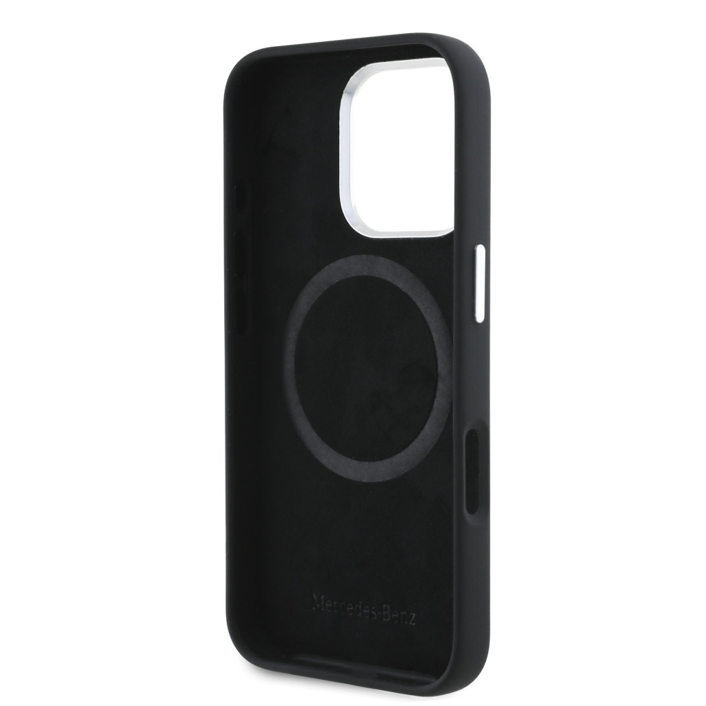 Mercedes Liquid Silicone Stripes Pattern MagSafe iPhone 16 Pro tok – Fekete