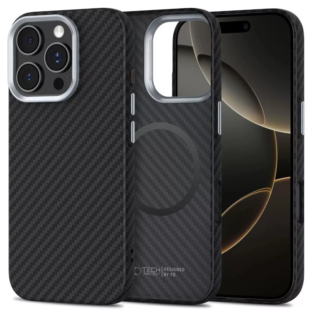 TECH-PROTECT ION CARBON MAGSAFE iPhone 16 Pro készülékhez tok fekete/ezüst