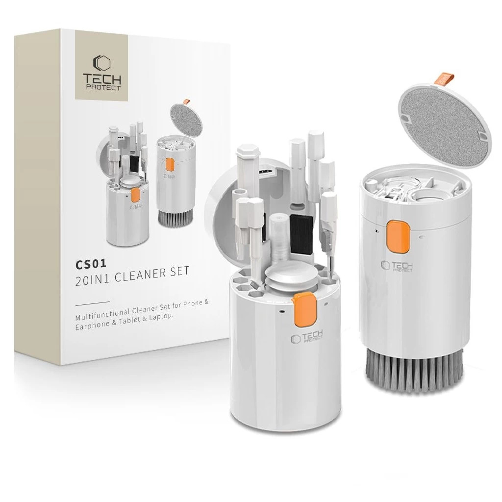 Tech-Protect CS01 fehér 20 az 1-ben tisztító szett telefonokhoz, headsetekhez, laptopokhoz, táblagépekhez, perifériákhoz