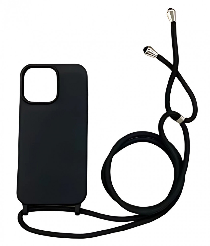 iPhone 16 Pro TPU+PC Feket tok,Fekete zsinórral