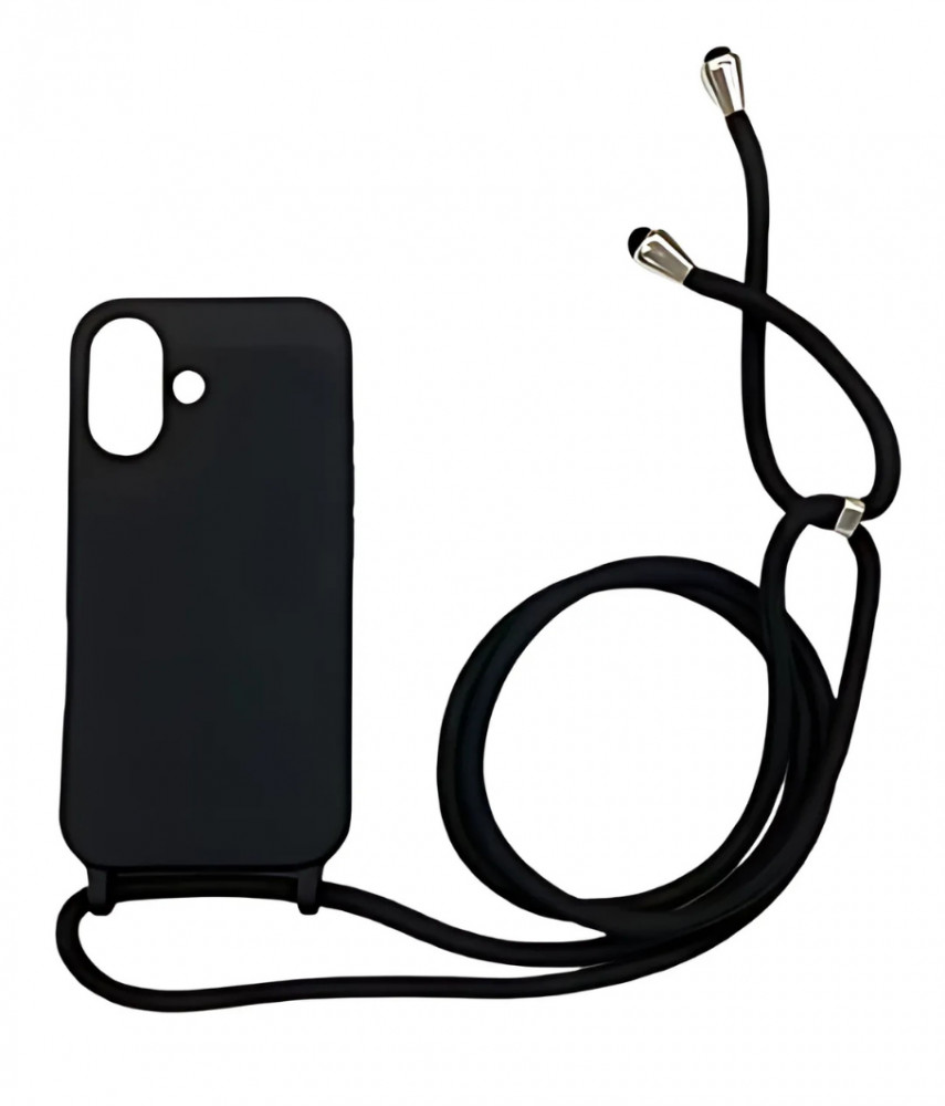 iPhone 16  TPU+PC Fekete tok,Fekete zsinórral