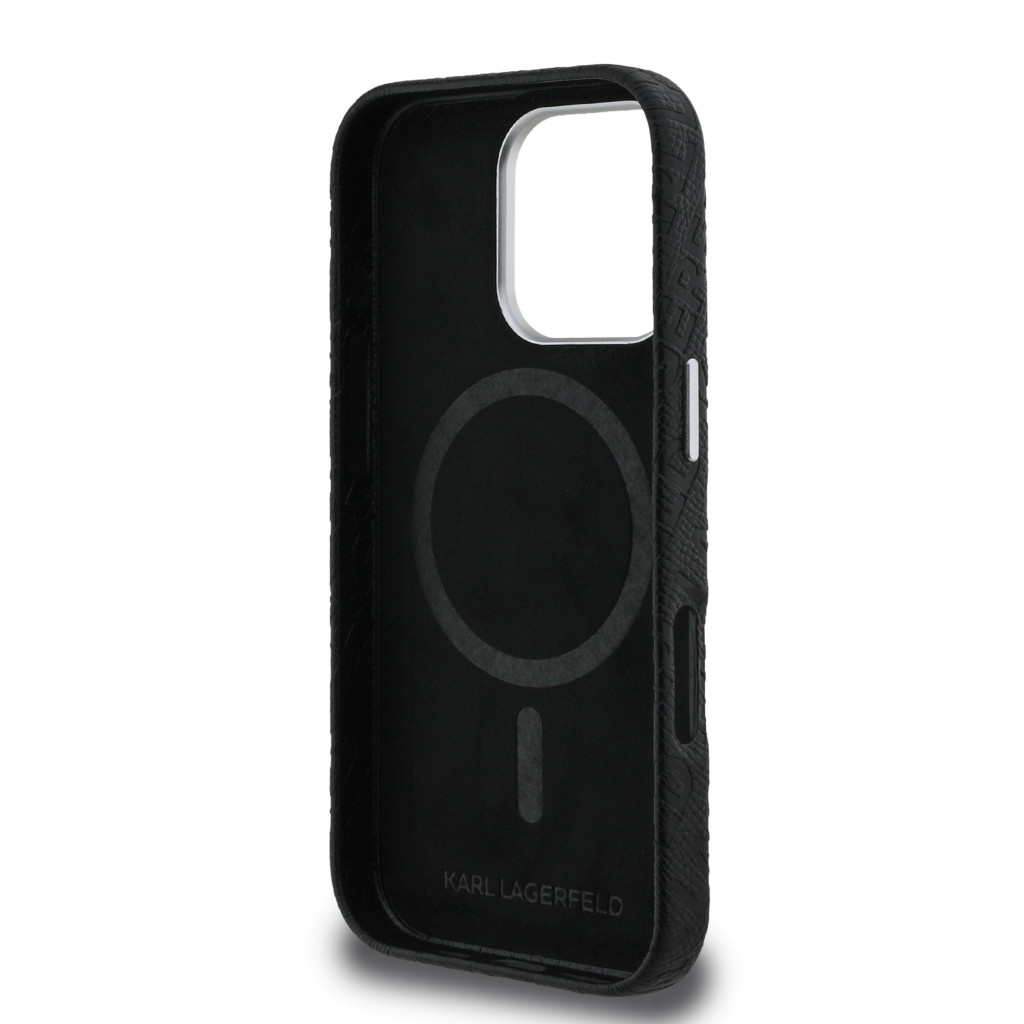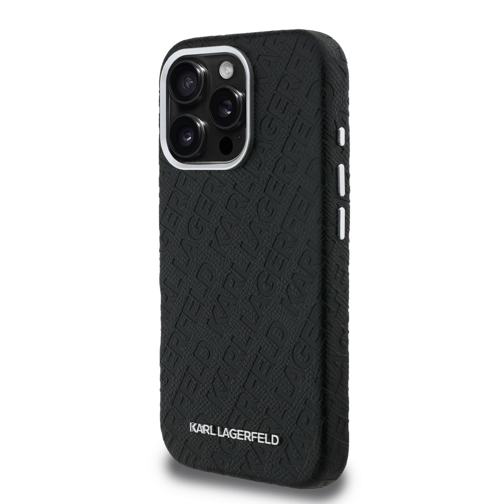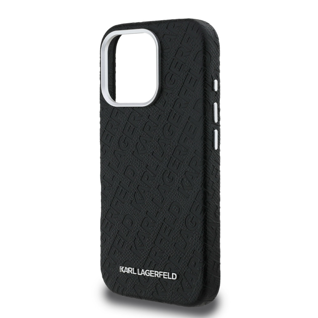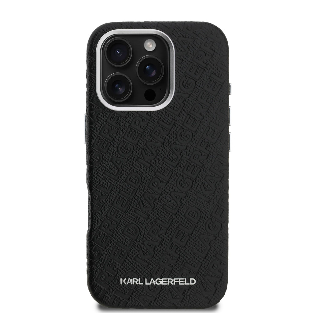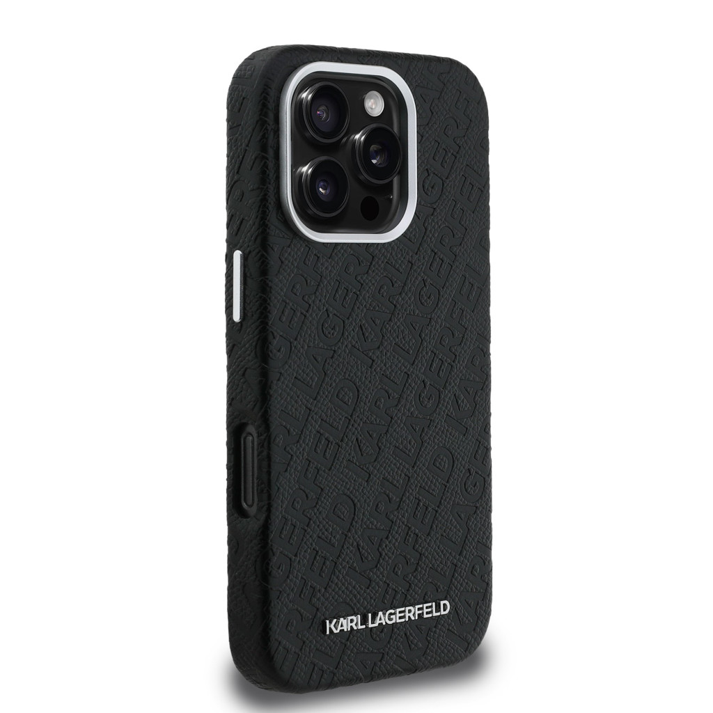 Karl Lagerfeld Grained PU Repeated Logo MagSafe iPhone 16 Pro tok – fekete