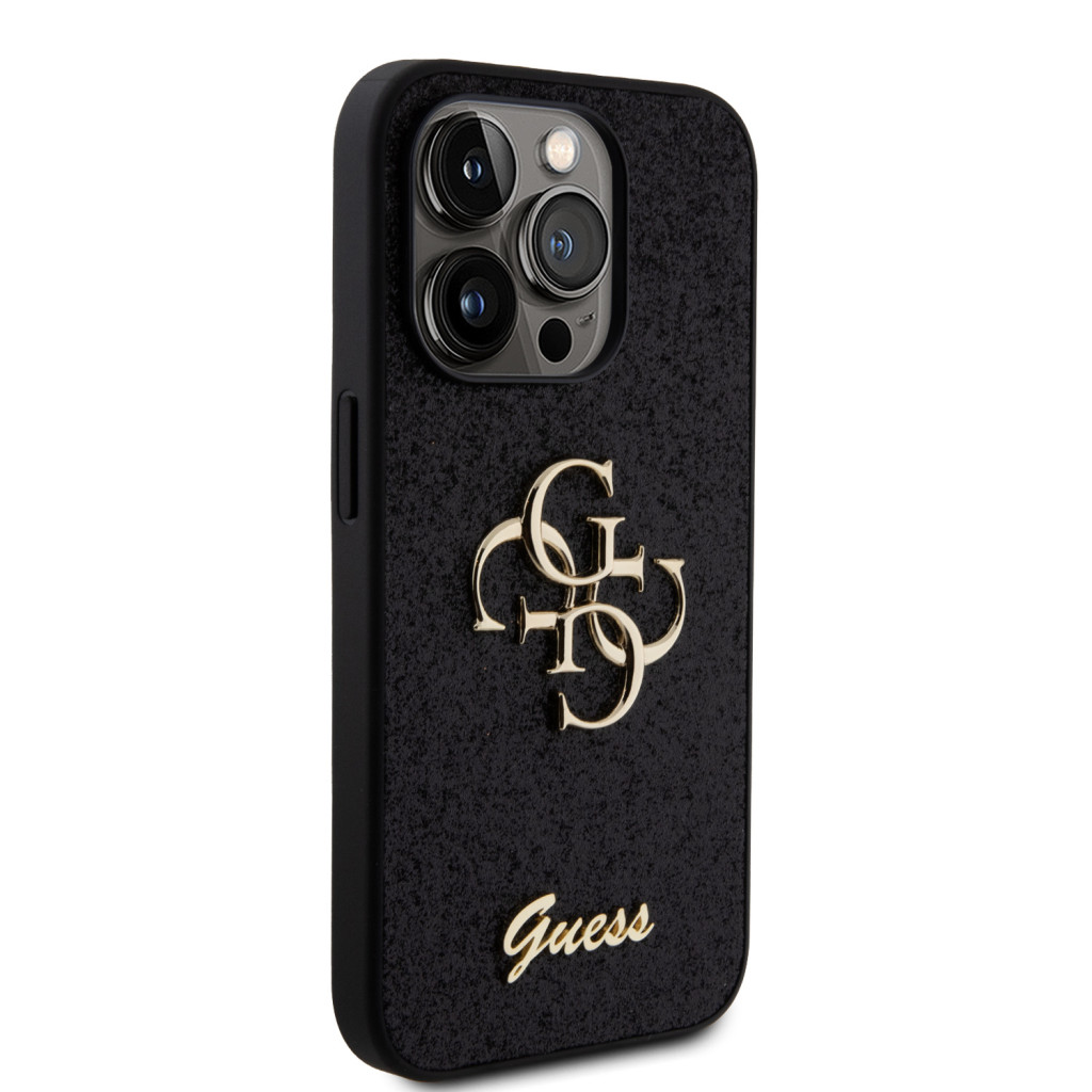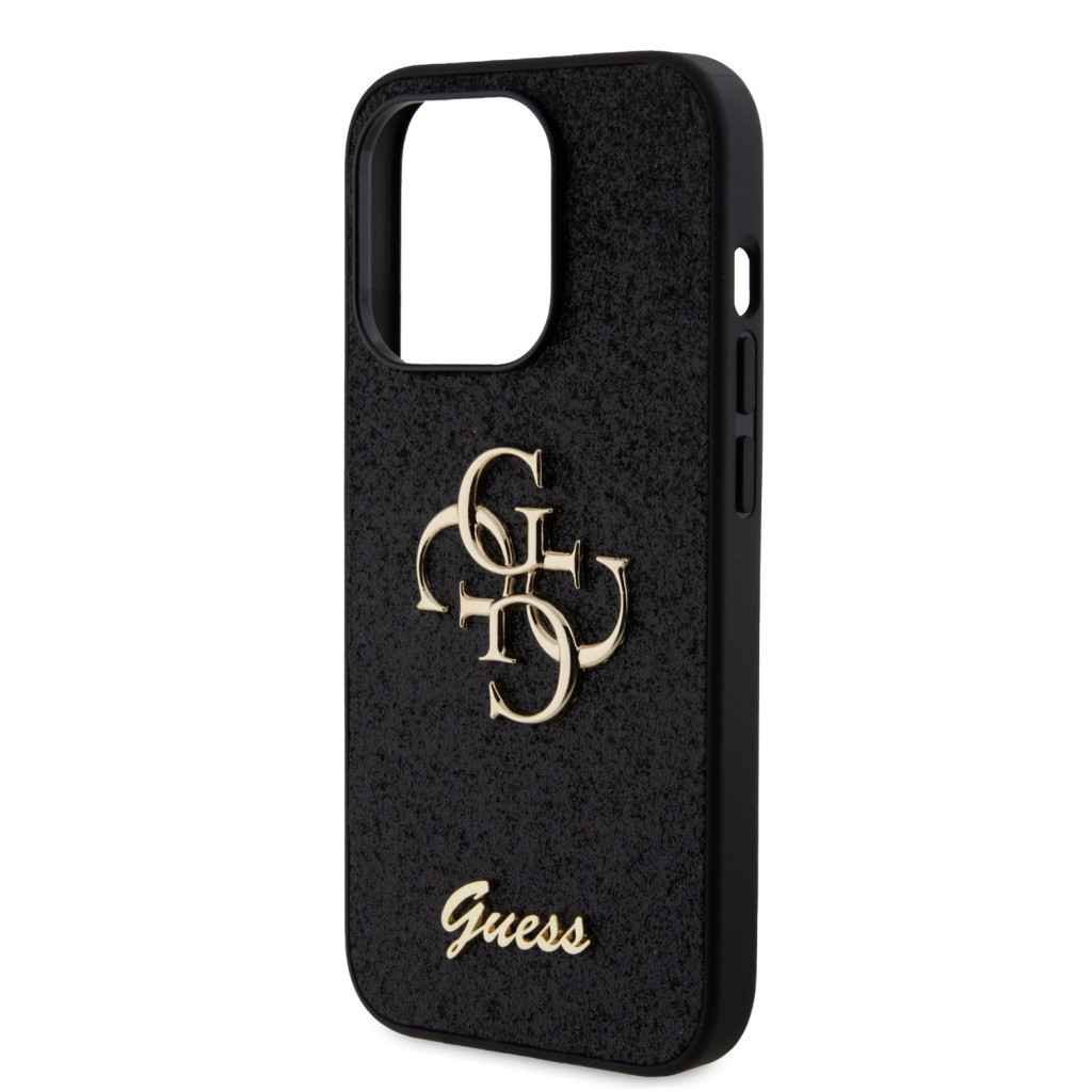 Guess PU Fixed Glitter 4G Metal Logo tok, iPhone 16 Pro - fekete