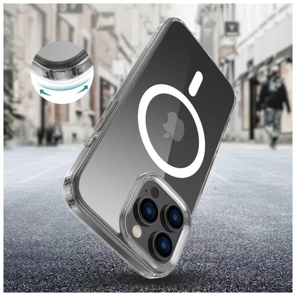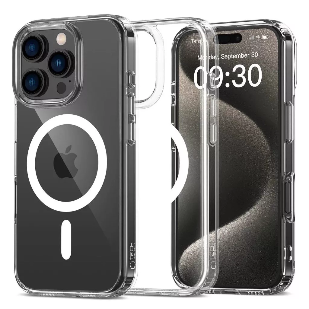 A Tech-Protect klasszikus, egyrészes Flexair Hybrid Magsafe tokja átlátszó kivitelben, amelyet úgy terveztek, hogy kiemelje a készülék vonalait és eredeti sziluettjét.