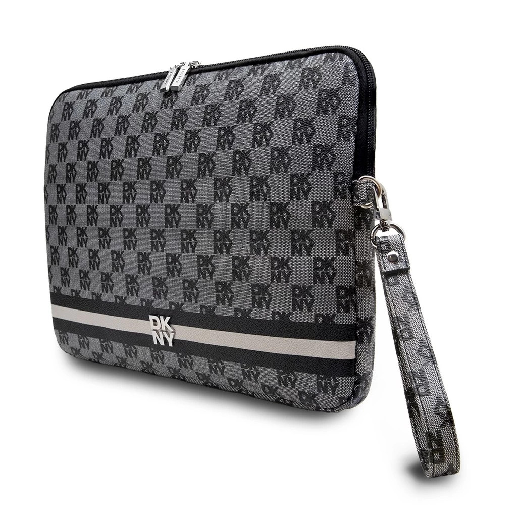 DKNY PU bőr Checkered Pattern and Stripe laptop tok 15/16" fekete
