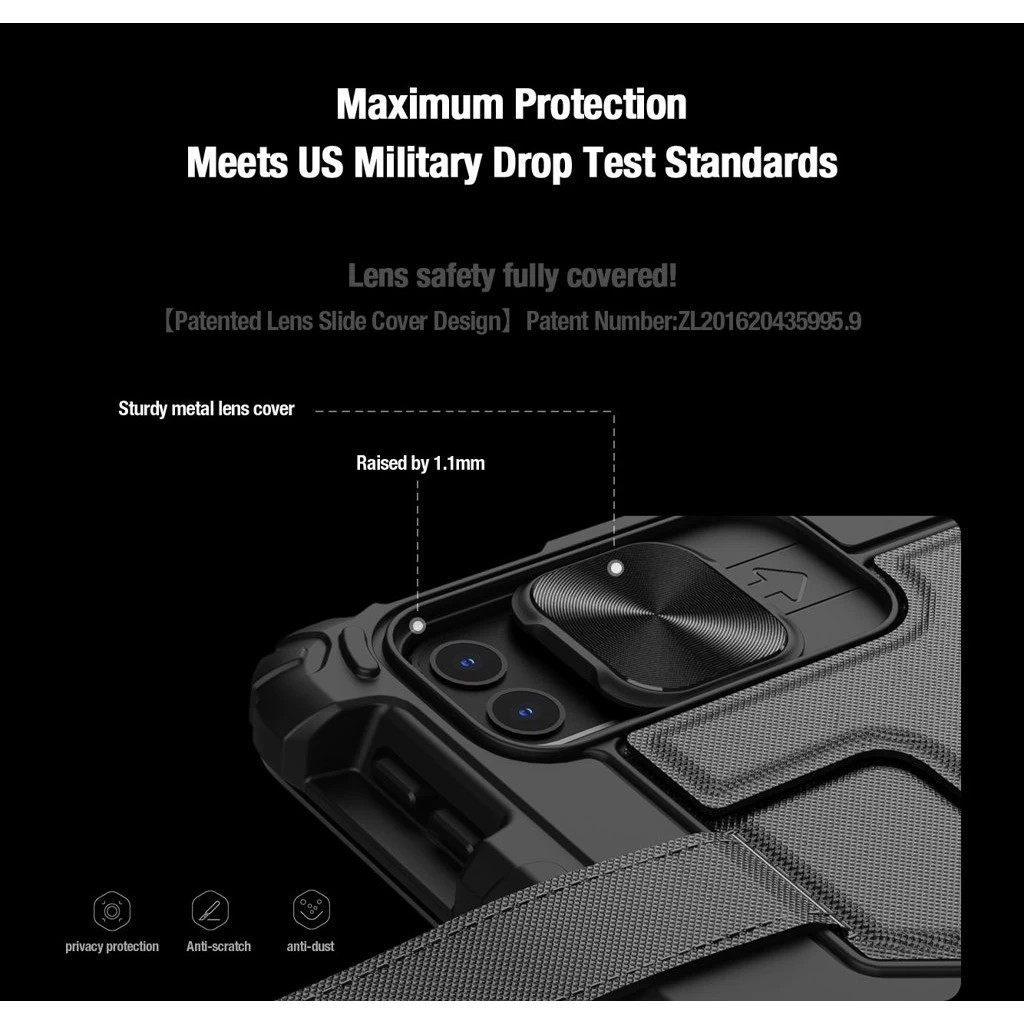 - Megerősített sarkok és csúsztatható kamera fedél további biztonságot nyújtanak